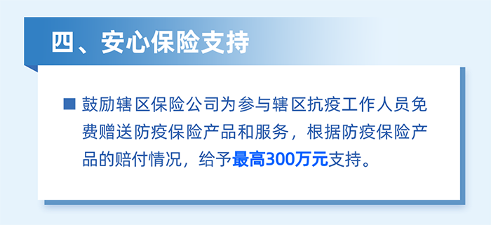 實施防疫保險補貼。對2022年3月1日至5月31日期間,購買防疫保險產(chǎn)品和服務(wù)的企業(yè),按照實付保費的50%予以支持,單家企業(yè)最高5萬元。(牽頭單位:區(qū)金融工作局)