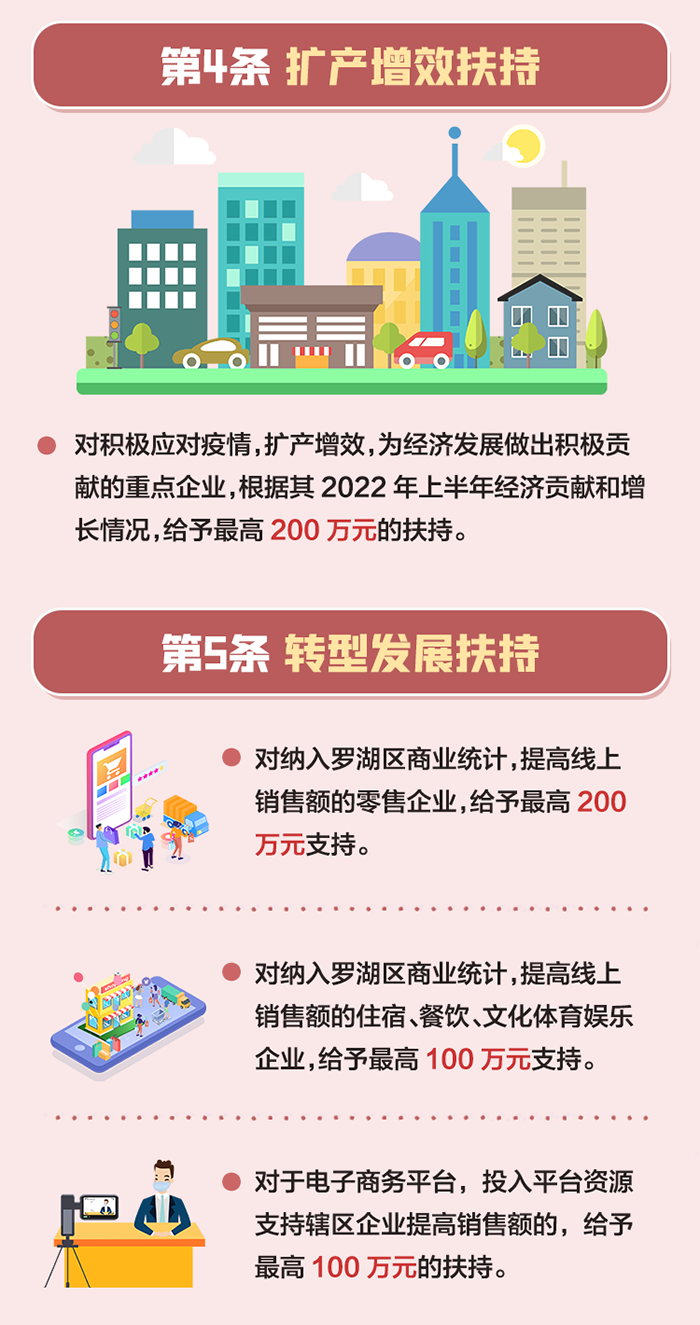 助力重點行業(yè)應(yīng)對疫情沖擊。對主動配合疫情防控并在條件具備時開展經(jīng)營的限額以上住宿(隔離酒店除外)、餐飲、汽車銷售企業(yè),以及納統(tǒng)景區(qū)、旅行社、電影院、體育、演藝娛樂場所,給予2022年3月1日至5月31日期間實際支付租金總額20%的補貼,最高20萬元(承租創(chuàng)新型產(chǎn)業(yè)用房、已享受第一條免租減租政策的除外)。(牽頭單位:區(qū)工業(yè)和信息化局、文化廣電旅游體育局)